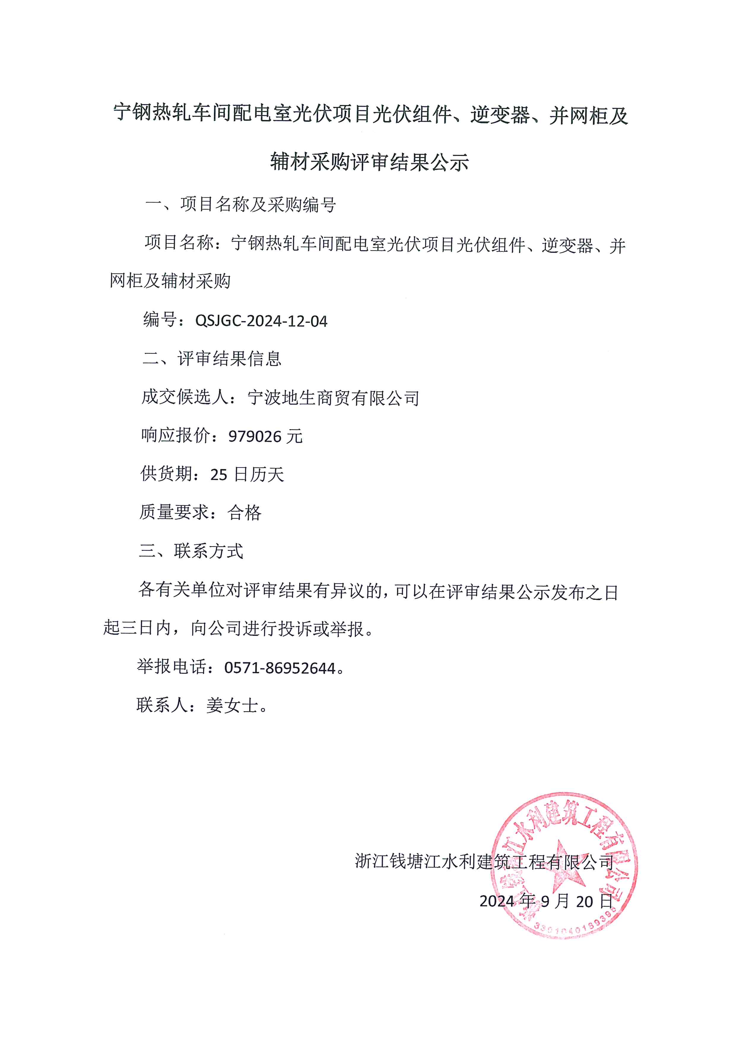 宁钢热轧车间配电室光伏项目光伏组件、逆变器、并网柜及辅材采购评审结果公示