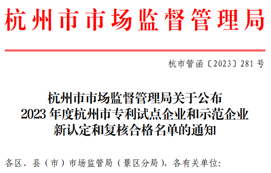 喜讯!浙钱水建顺利通过2023年度杭州市专利示范企业认定
