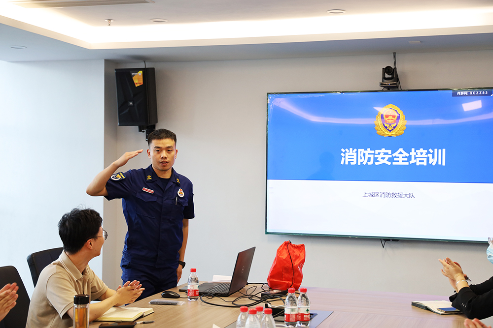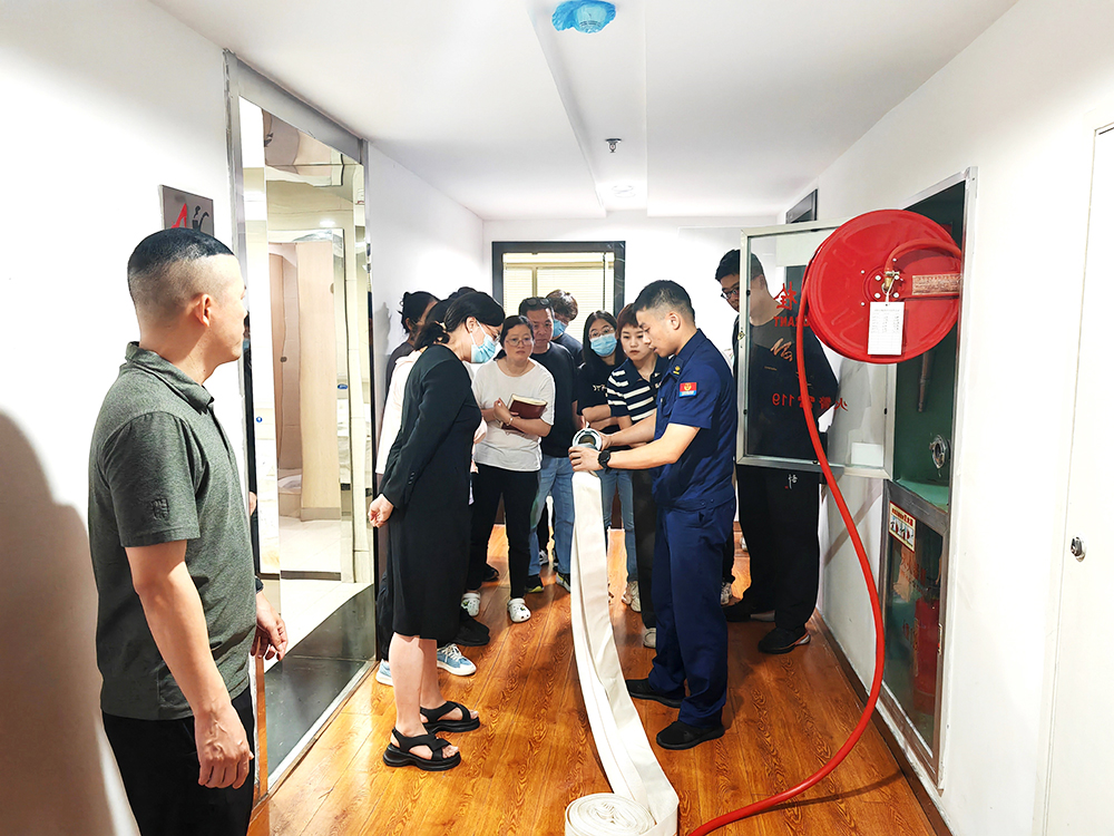 公司邀请了近江消防救援站邱班长为员工开展了消防知识讲解和应急疏散指导,并现场示范了防毒面罩的佩戴、灭火器的使用、消防栓的使用以及应急逃生技巧。邱班长讲授完毕,公司本部根据消防应急演练方案,模拟了办公大楼内失火逃生演练,开展逃生自救,并安全撤离到指定地点。